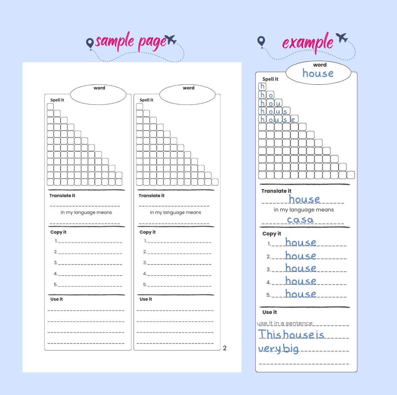 For students ready to move beyond basic vocabulary into deeper language work.Each page includes: Spell It (grid practice), Translate It (connect to native language), Copy It (5 lines of extended writing), and Use It (4 lines of independent sentence creation). Same structure as Level 1, but asking more of students.Bridges foundation to mastery. Strengthens habits from Level 1 while preparing for the complex work in Level 3.What's Inside:• 100 pages building on Level 1 foundations