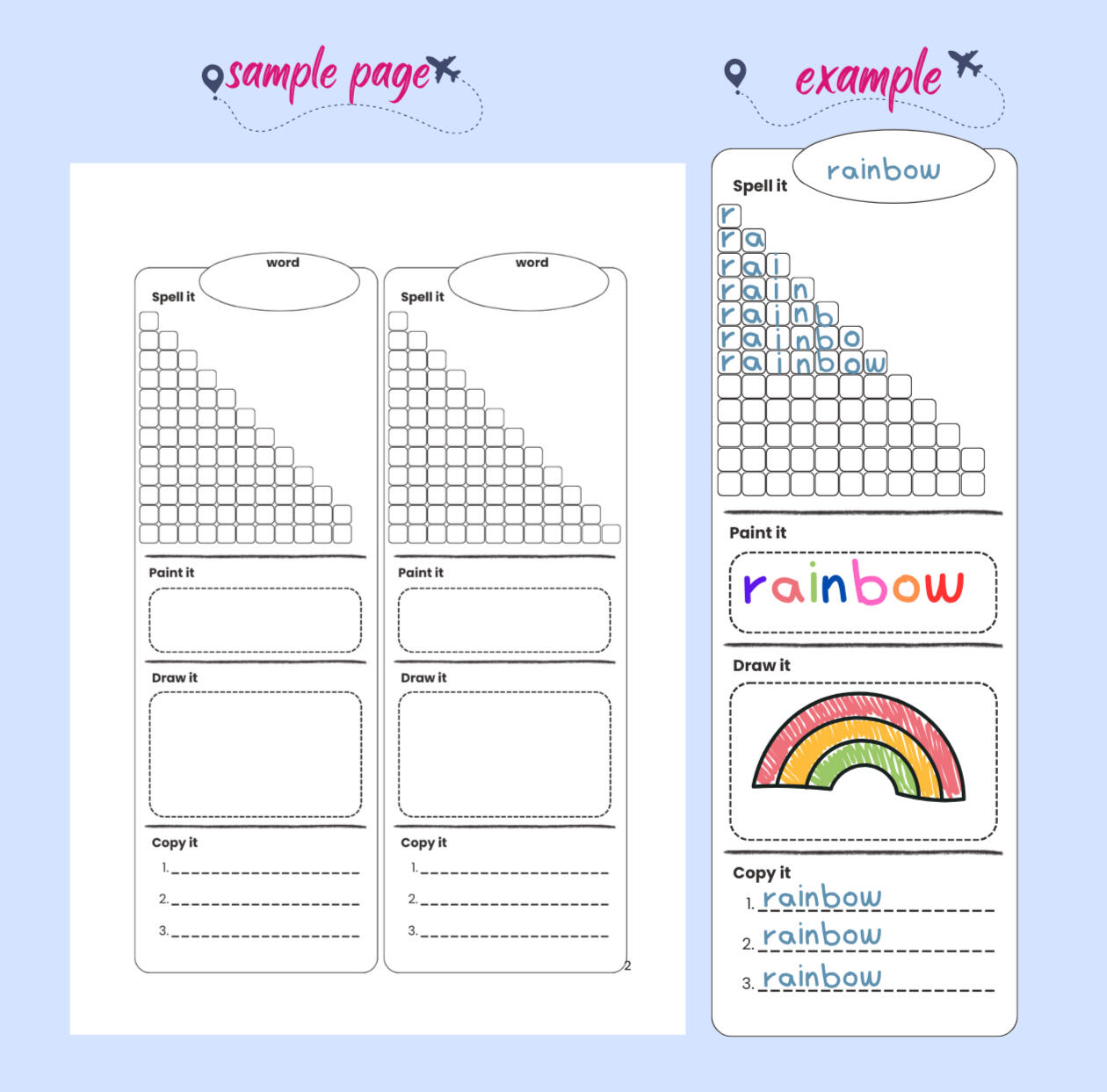 Students spell, draw, colour, and write high-frequency words using a clear, repeatable structure designed for classroom use.